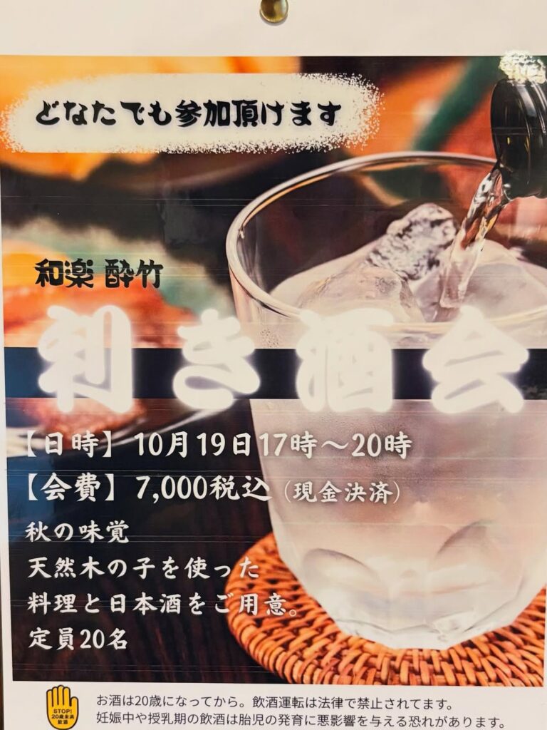 10/19(日)秋の味覚と日本酒のマリアージュ!和楽 酔竹で利き酒会が開催