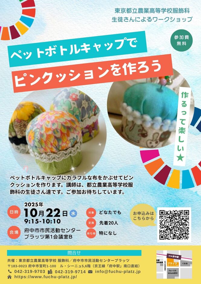 【申込募集】10/22(水)ペットボトルキャップが大変身!手ぶらでOK!「カラフルピンクッション」作り