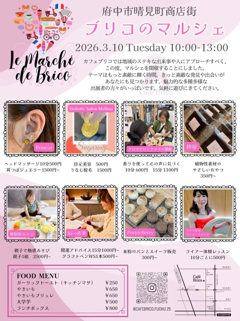 3/10(火)Café Bricoでブリコのマルシェ ちいさなときめきが集まります