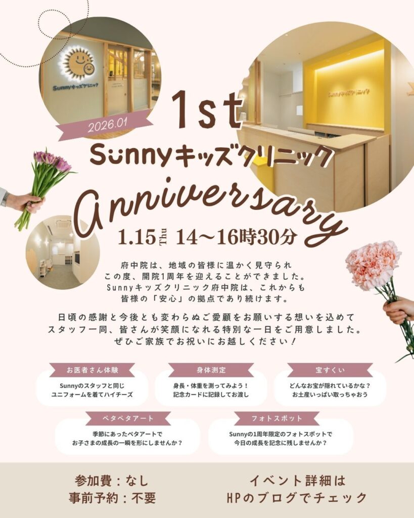 1/15(木)|Sunnyキッズクリニック府中院 1周年アニバーサリーイベント開催