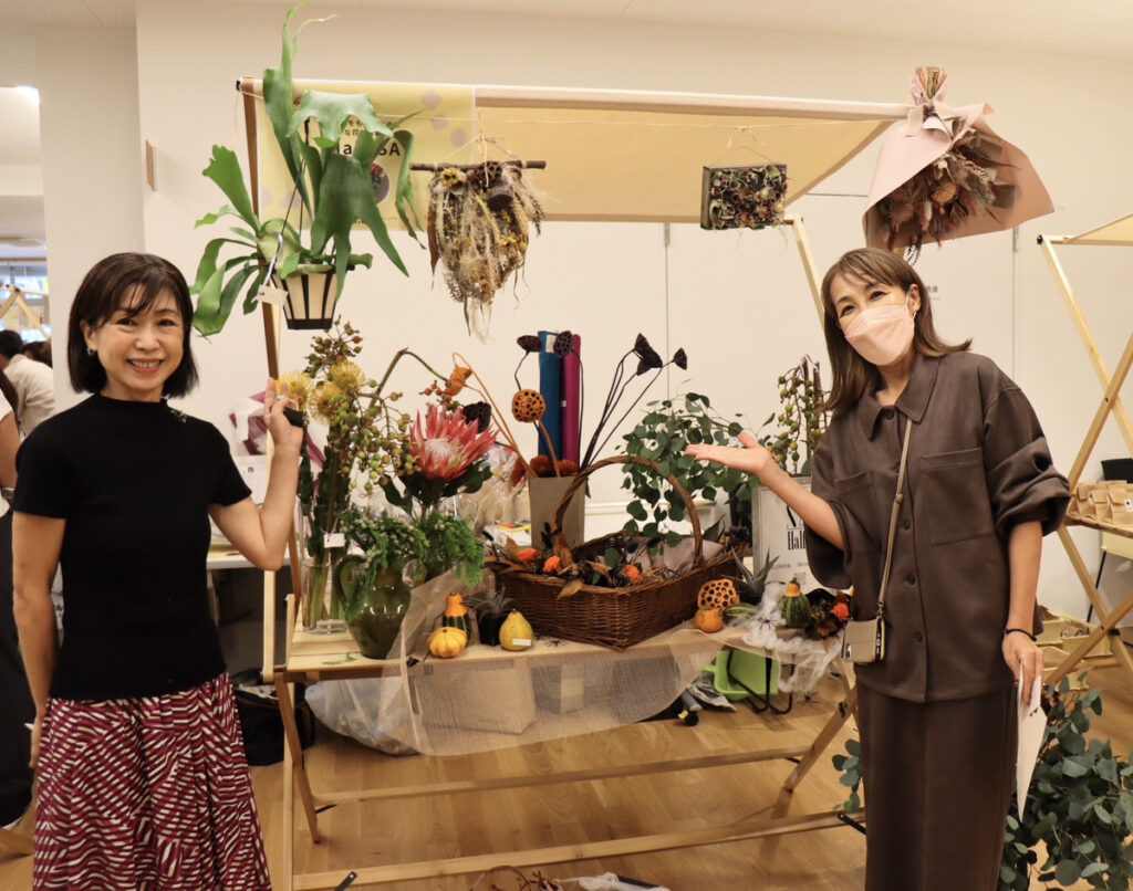 「Half-SA(ハーフエスエー)」は、インターネット販売や、フラワーデザインレッスンの教室で活動するフローリストユニット。今回で2回目の出店となり、会場入り口を華やかに彩っていました。