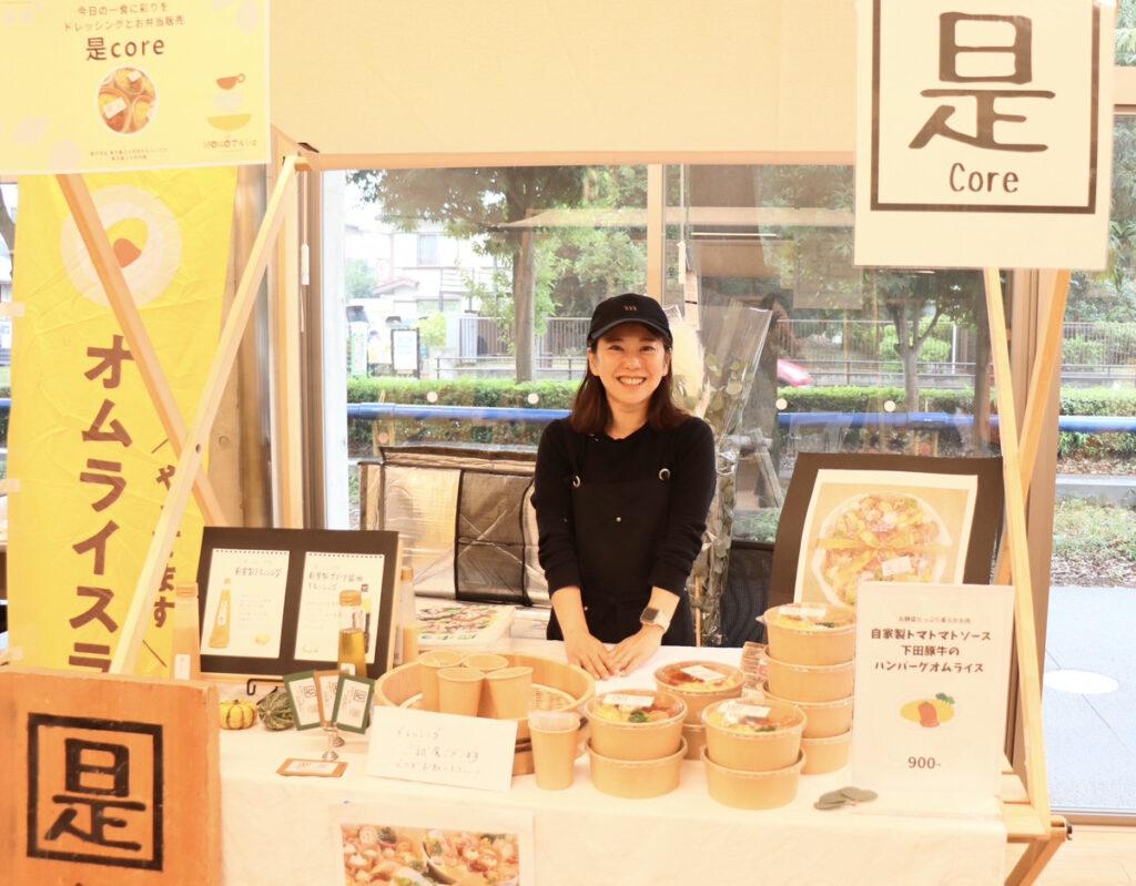 国立にキッチンを構え、お弁当やドレッシング販売を手がける是coreさん。今回の出店は、他の出展者さんからの紹介がきっかけで、初の「試食販売」にチャレンジ。