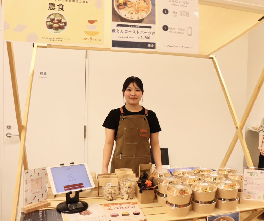 普段は農工大内のカフェスペースで料理を提供している「農食」さん。今回のマルシェでは、規格外野菜を食べて育った豚を使った「優とんロースポーク丼」や、グルテンフリーのカヌレなどを販売。