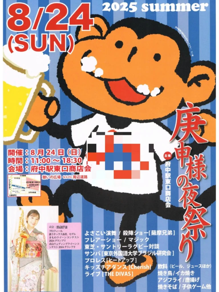 今年も府中駅東口商店会で、地域への感謝を込めたお祭り「庚申様の夜祭」が開催されますよ! 今年は2025年8月24日(日)に開催予定とのこと。特設ステージでの音楽やダンスの披露、商店街のさまざまなお店による楽しいブースなど、子どもから大人までみん... -